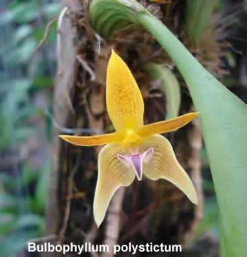 | Bulbophyllum polystictum An easy cultivated species from Indonesia. It blooms in the spring with flowers measuring 10cm wide. It prefers intermediate conditions. |