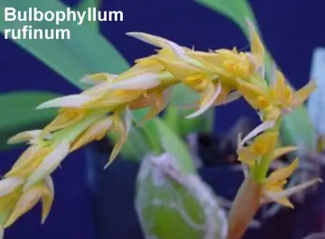 | Bulbophyllum rufinum Range from Myanamr, Thailand, Laos, Viet Nam and Kampuchea. Grow in warm conditions on a raft or slab for best effect. |