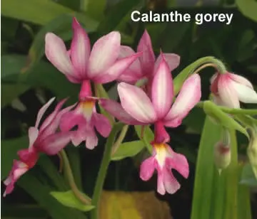 | Calanthe Gorey The plants form large palm-like light green leaves in the growing season (Spring into Summer) and go decidiuous in the Fall to Winter season. It is at this time that the majestic spikes develop, reaching up 50cm before cascading downward for a stunning display. The flowers last for months when bloomed under cool and dry conditions, at which time watering should be done sparingly; once every 2-3 weeks. |