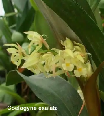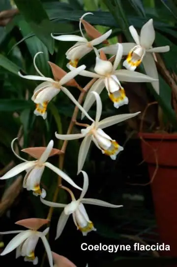 | Coelogyne flaccida Nepal, Northeast India (Himalayas, Sikkim, Khasia Hills), Burma, China (Yunnan), Laos, Vietnam, Thailand. Flowers February to May. |