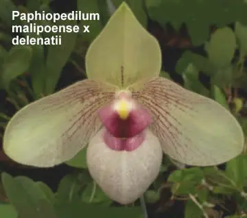 From tropical Asia there are 60 species in this genus, known as "ladies slippers" from the shape of their lip. There are three groups, the mottled leaf species and the plain leaved species with muliple flowers like warm conditions while plain leaved single flowers like cool conditions. |